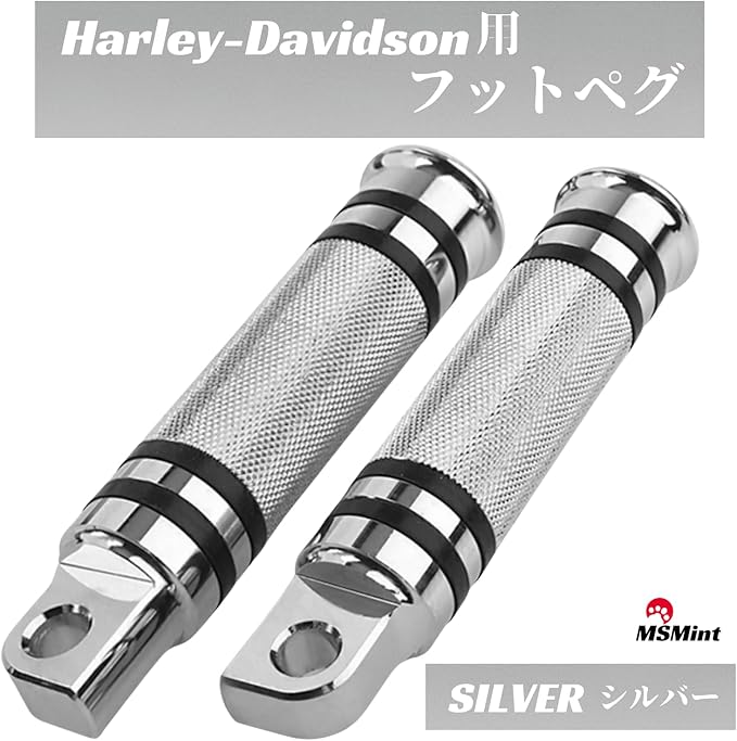 MSMint ハーレー フットペグ フットペダル フットレスト ステップ ツーリング スポーツスター ソフテイル ダイナ CNC アルミ (シルバー)