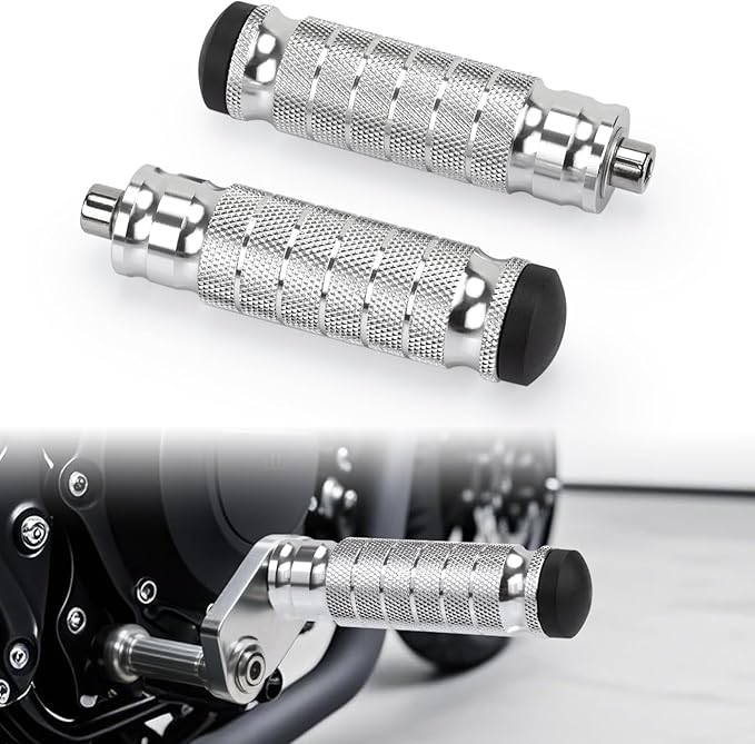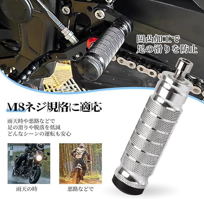 RACEAST フットペグ ステップバー バイク ステップ タンデムステップ ペダル ローレットアルミ合金製 高強度 高耐久 M8ボルト 左右セット汎用 フロントペダル リアフットレスト(銀)