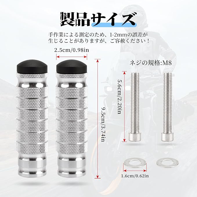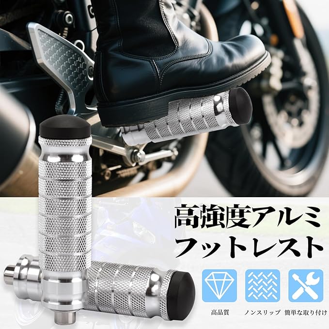 【幅広い互換性】シンプルなデザインでどんなバイクにも合わせやすいバイク用フットペグ。ネジ規格さえ合えば、さまざまなメーカーのオートバイに取り付けて使用することができます。このステップバーのネジ規格はM8です。ホンダ、ヤマハ、スズキ、カワサキ、ハーレーなど幅広い車種に簡単装着が可能。