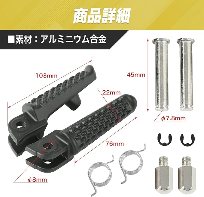 ✅軽くて耐久性のあるアルミニウム素材のヤマハ対応フロントペダル左右セット。滑り止め凹凸でグリップ力が高く悪天候でも安定した走行が可能。