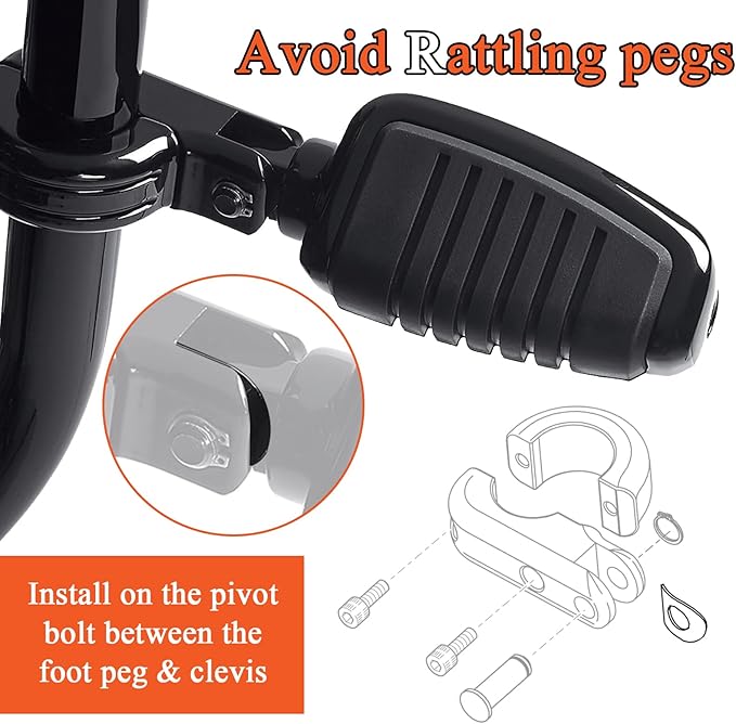 [しっかりフィット]これらを使用して、ほとんどのアフターマーケットのオスマウントフットペグで摩擦を作り出し、フットペグを上下の位置でしっかりと固定するのに役立ちます。