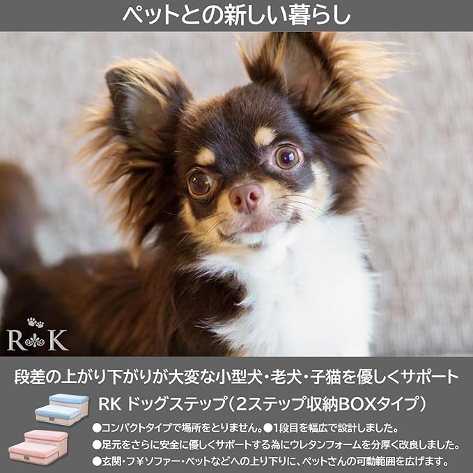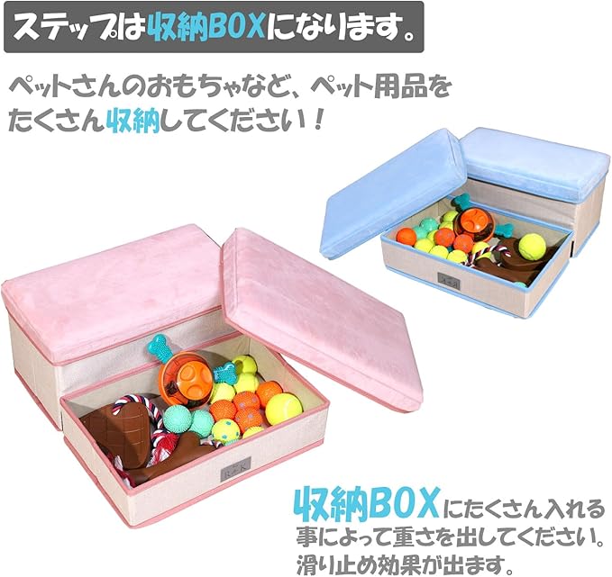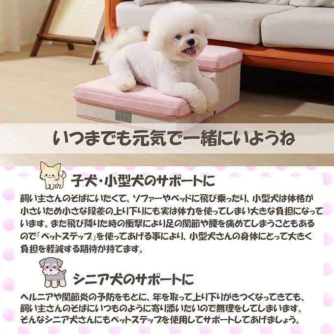 RK ペットステップ ドッグステップ ペット ステップ 階段 犬の階段 2段 タイプ 収納ボックス 組立 折りたたみ コンパクト 軽量 踏み台 スロープ 国内検品済 ベビーピンク