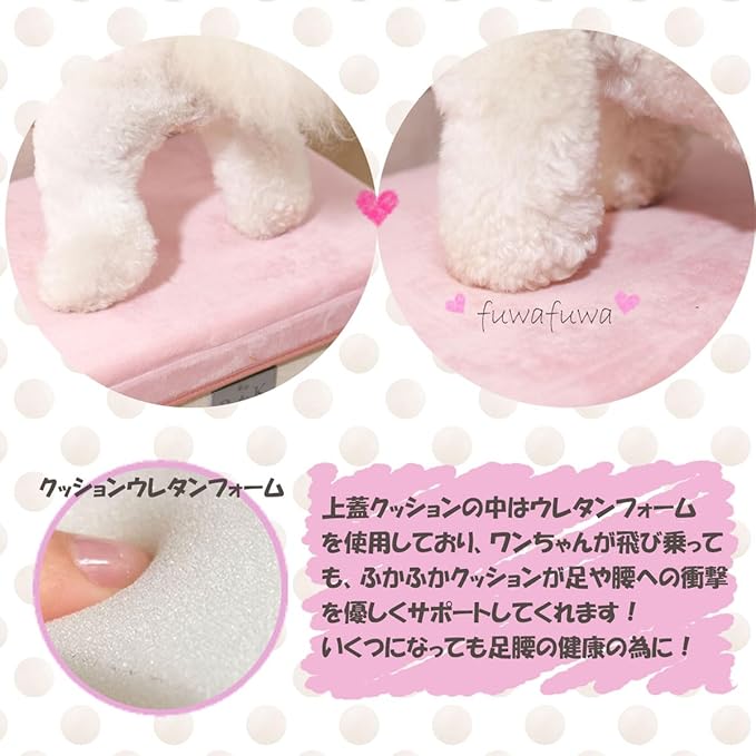 ●収納型のドックステップで、ワンちゃんの服や小物、飼い主様の荷物など、スペースを活用して収納いただけます。 ●チップウレタンと違い、1枚物のウレタンシートを使用している為、適度な硬さとクッション性で足腰の負担を軽減します。 ●1段目が奥行27cmと幅広サイズになっており、階段の勾配が緩やか。 ●コンパクトサイズで場所をとりません。 ●使わないときは折り畳んでおく事も可能です。 ●軽量型で組み立ても簡単!