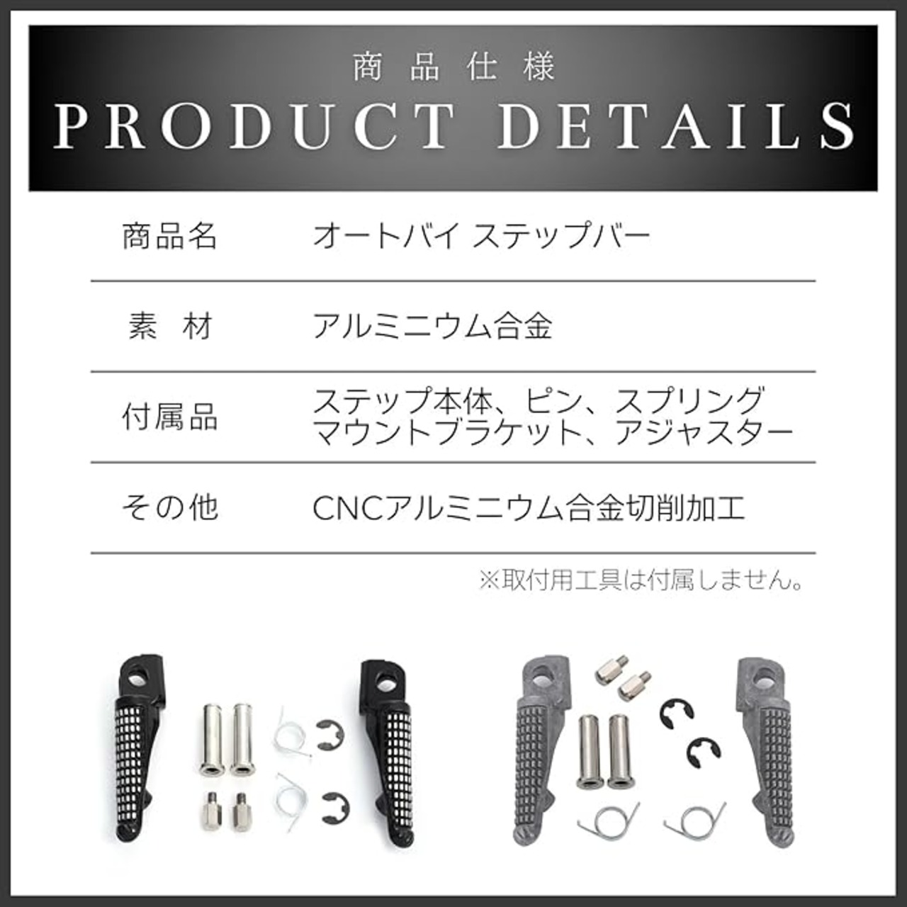 【高耐久性】ヤマハバイク用ステップは、耐えられるメタル素材で作られており、あらゆる状況下で高い耐久性を発揮します。これにより、安心してライディングを楽しむことができます。かっこいいカスタマイズを始めることができ、軽量でも優れた耐久性を持つため、長時間のライディングでも快適さを維持し、バイクのパフォーマンスを最大限に引き出す