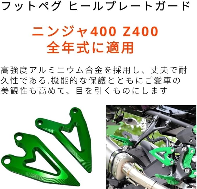 motokano フットペグ ヒールプレートガード ニンジャ400 Z400 全年式 に適用 (グリーン)