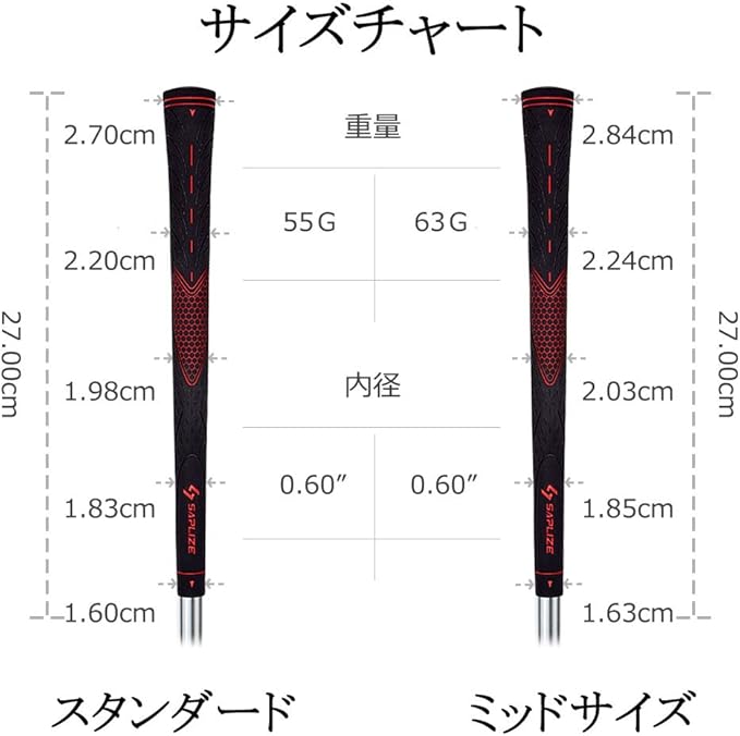 【サイズ】スタンダード:長さ27.4cm、重量57g、コアサイズ0.6in;ご購入の前には使い慣れたグリップのサイズをご確認下さい