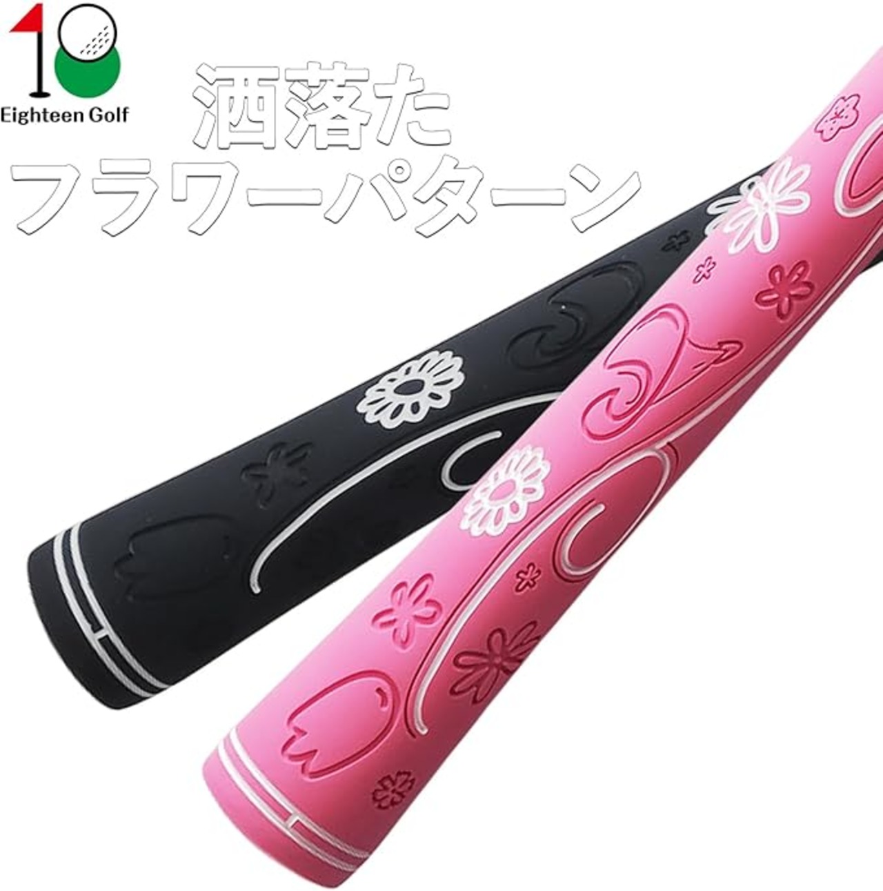 Eighteen Golf オリジナル ラバー(ゴム) グリップ セット フラワーパタンを施しながら、しっかりしたグリップ力でオシャレなグリップとなっています。