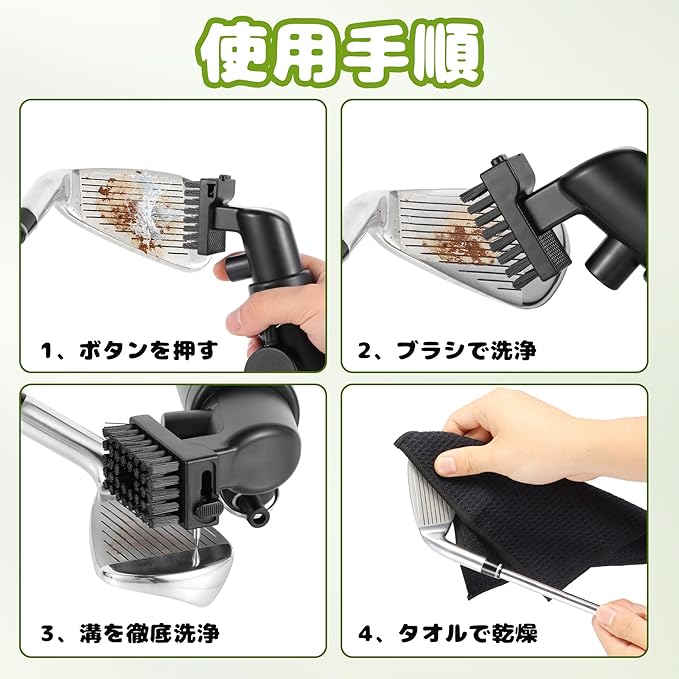 【3点セットでオールインワン】ブラシ+タオル+ピンオンリールの軽量ゴルフクラブリーナーが、コースでも自宅でも即時メンテナンスを実現。プロ級手入れでゴルフを快適に。