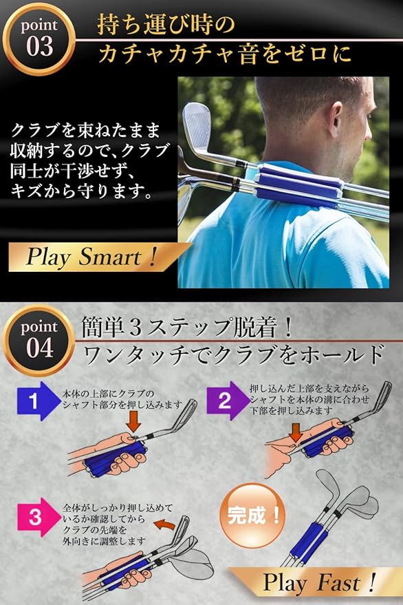 ✅【クラブの干渉を防止】クラブを束ねたままでバッグに収納可能、干渉してカチャカチャ音が鳴るのを防止します。