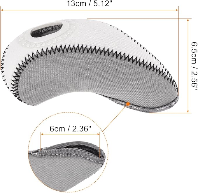 カラー:グレー、 ホワイト; 合計サイズ:13 x 6.5 cm(L x W); 開口部の長さ:6cm; パッキングリスト:10個 x ゴルフクラブアイアンヘッドカバー
