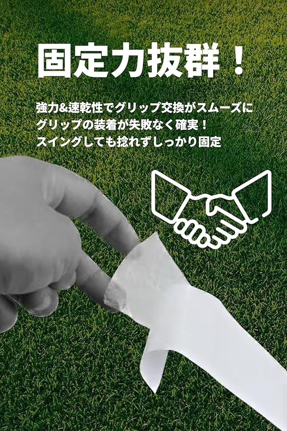 【固定力】強力&速乾性でグリップ交換がスムーズにできます。半日乾かせばしっかり固定されスイングしても捻じれません。