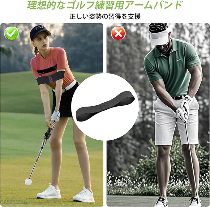 【正しいゴルフグリップを習得】当社ゴルフれんしゅう器具スイング右利きゴルファーのための正しいフィンガーポジショニングを提供します。ゴルフクラブの正しい握り方を指導するトレーニングアイテムです。黒いアームバンド付きで、ユーザーの姿勢矯正をサポート。頑丈な構造と滑り止めラバーグリップにより、トレーニング中の安定性を確保。日常練習に最適な選択肢です。