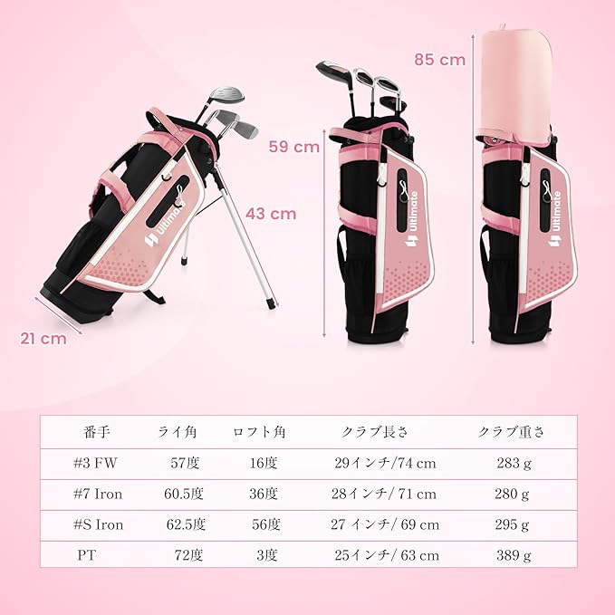 - カラー:ブルー/グリーン/ピンク - ゴルフクラブ素材:金属+ラバー - ゴルフバッグ素材:PU
