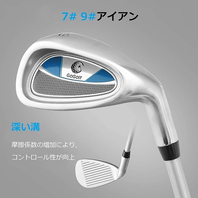 【高品質な素材&子供に優しいデザイン】フェアウェイウッドとアイアンのシャフトにグラスファイバーを使用し、エネルギー変換効率を最適化したためです。パターのシャフトはスチール製で、反りや折れが生じにくい。また、子どもの手を保護し、より良いフィーリングを提供するために、すべてのクラブにTPRグリップを装備しています。