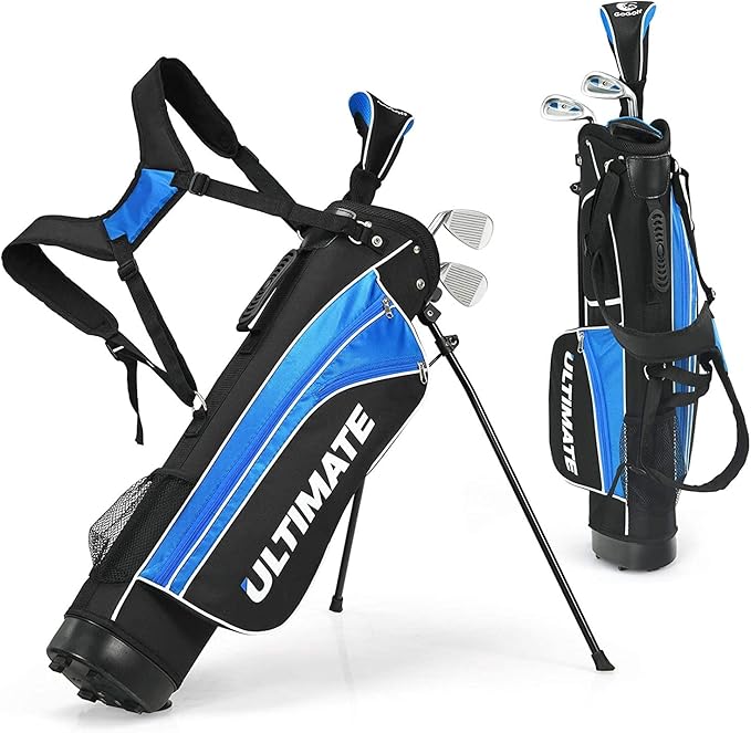 GYMAX 子供用 ゴルフ クラブセット ゴルフセット ゴルフクラブ一式セット クラブ4本 右利き用 軽量設計 カバー付き キャディバック付き ゴルフ用品 プレゼント ジュニアゴルフセット ブルー