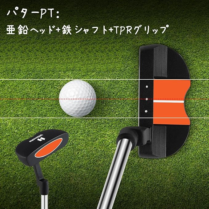 ⭐クラブ素材:FW#3:アルミヘッド+グラスファイバーシャフト+TPRグリップ;I#7とI#9:亜鉛ヘッド+グラスファイバーシャフト+TPRグリップ;PT:亜鉛ヘッド+鉄シャフト+TPRグリップ
