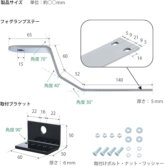 付属品:ブラケット 2、取付けボルト/ナット/ワッシャー スチール製