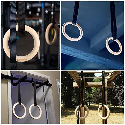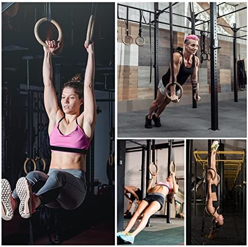 5BILLION 木製体操吊り輪 - オリンピック体操リング 調節可能な長いバックルのストラップ - 自宅のジム ・ フィットネスのためのトレーニング - あなたの筋肉のアップ、プルアップ ・ 筋力トレーニングに最適