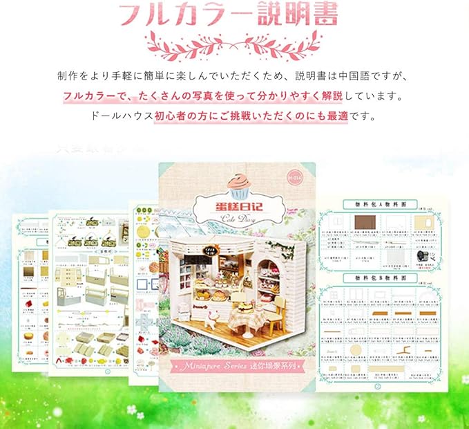 箱・説明書は中国語で書かれていますが、図解されていますので理解できます。初心者の方でも作って頂けるよう、説明書はフルカラーで全行程が丁寧に解説されています。