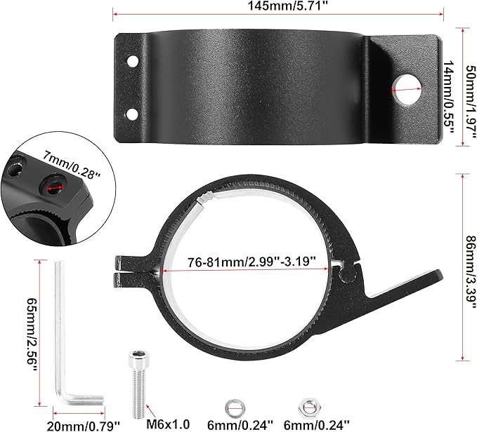 パッケージ内容:2 xチューブクランプ、4 xネジ、4 xナット、4 x弾性ガスケット、1xレンチ。