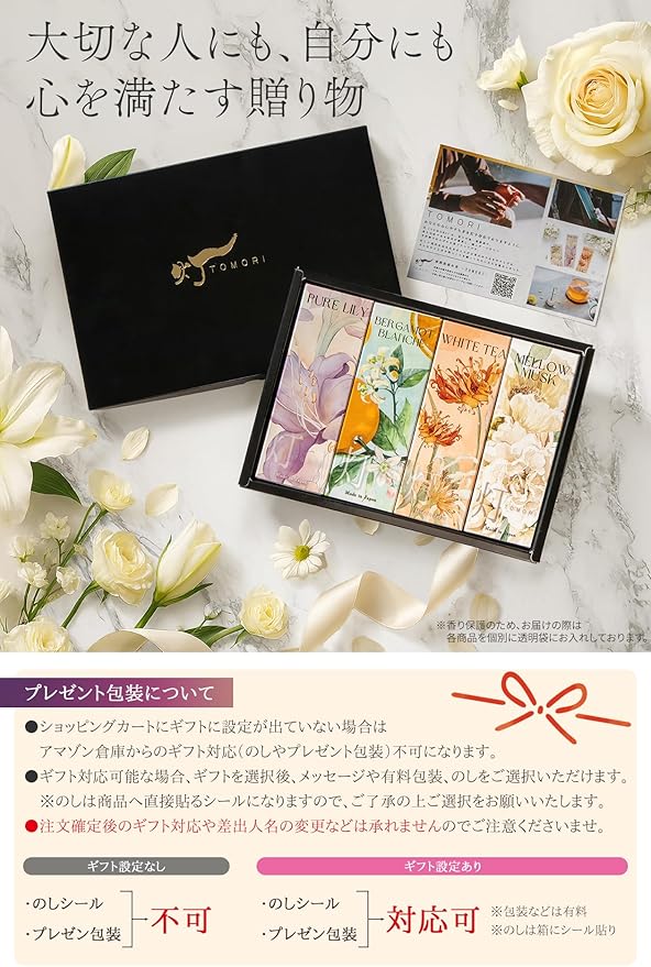 【気軽に贈れる上質アロマ香】センスのいい“ちょっとした贈り物”にぴったり。高品質な素材と手仕事で作られたお香は、気取らず贈れる上質感が魅力です。シンプルながら高級感のあるボックス入りで、誕生日や母の日、敬老の日、季節のご挨拶やお礼など、さまざまなギフトシーンに最適。香りの贈り物をお探しの方にもおすすめです。