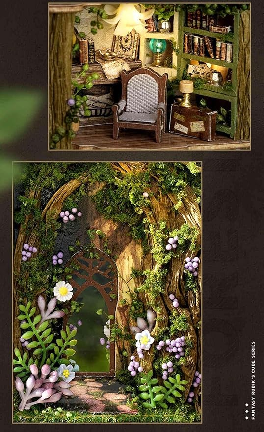 moin moin ドールハウス ミニチュア 手作りキット セット 【 英語説明書 】 手のひらサイズの 街 ショップ 店 レトロ タウン 並べて 街並み パカッと開く ジャングル ワンダーランド ツリーハウス 森 花 街 町 パリ ヨーロッパ 本型 カット済 紙パーツ | LEDライト (ジャングルワンダーランド) 2503dh450