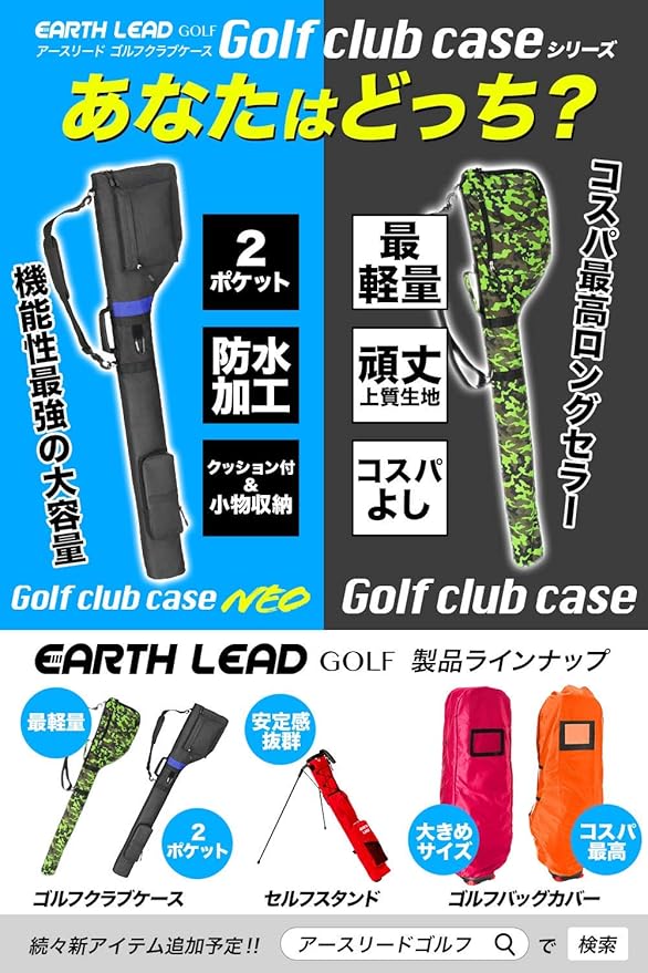 【公式】 EARTH LEAD ゴルフ クラブケース 【超軽量 2ポケット 防水 14色】 7本以上収納可能 大容量 軽量 ゴルフバッグ ソフト 練習用 折り畳み