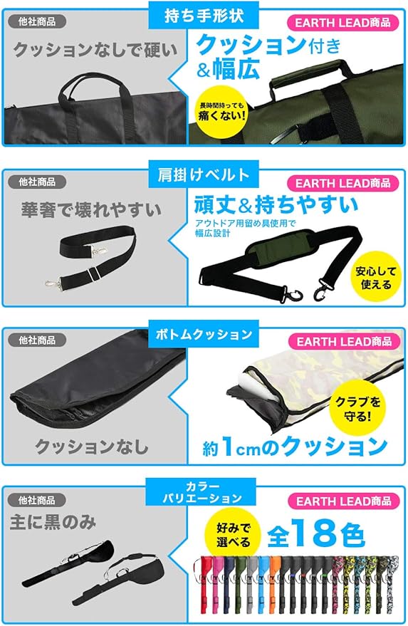 【公式】 EARTH LEAD ゴルフ クラブケース 【18色 超軽量 2ポケット】 7本以上収納可能 大容量 ゴルフバッグ ソフト 練習用 折り畳み おしゃれ メンズ レディース