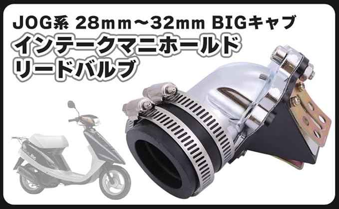 JOG系 28mm~32mm BIGキャブ インテークマニホールド リードバルブの汎用の社外品になります。適合車種:ヤマハ JOG50 3KJ 3YJ 3RY / スーパーJOG ZR / JOGアプリオ (1~8) / JOGアプリオTYPE2 / JOG90 / アクシス50 / アクシス90 / グランドアクシス100 / ビーノ 5AU1 / BW'S50(JOGZ2・リモコンJOG系エンジンは取り付け不可。)