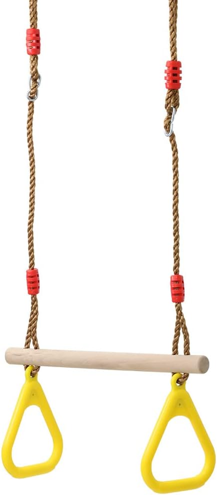 UPstore ぶら下がりブランコ 体操吊り輪 子供用 筋トレ 体幹 トレーニング 木製 懸垂 遊具 室内 鉄棒 バランス フィットネス (イエロー)