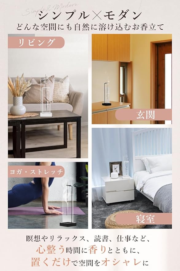 【W監修のお香立て】 お香教室を主宰するプロの香司と、テレビ出演経験もあるプロのインテリアコーディネーターの監修のもと商品企画しました。プロの専門知識を活かし、デザイン性とお香の焚きやすさを両立させた精巧な設計を実現。洗練されたデザインが空間に優雅な雰囲気をもたらし、幅広いインテリアに美しいアクセントを加えます。