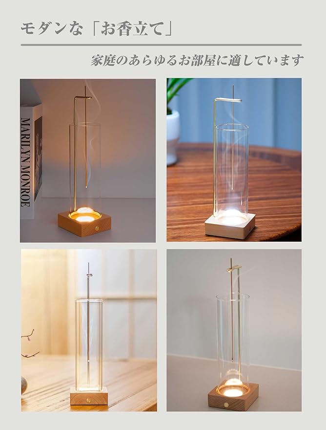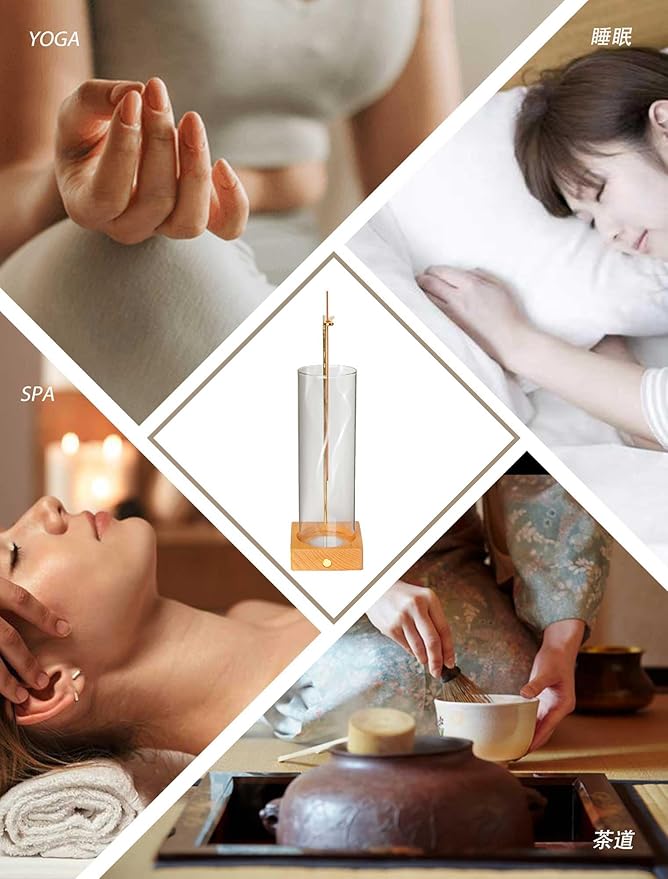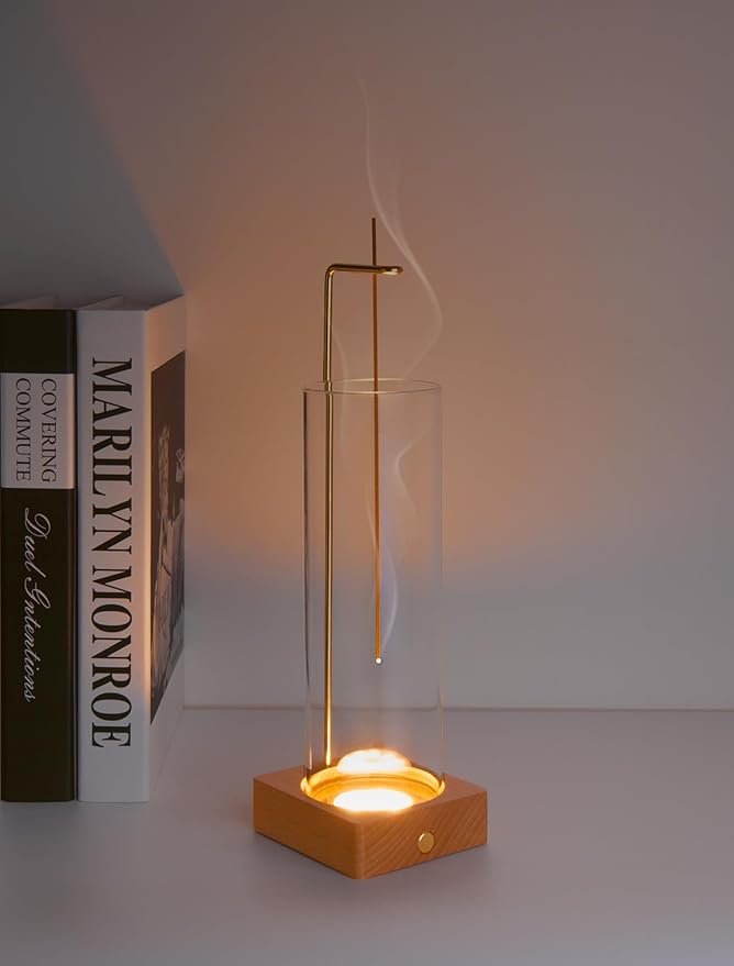 【書斎と寝室の香道道具】お香立ては書斎での穏やかな香り時間に、寝室でのリラックスタイムに最適です。防灰ガラスカップと LED 調光が香炉の実用性を高め、癒しの香道体験を日常に溶け込ませます。