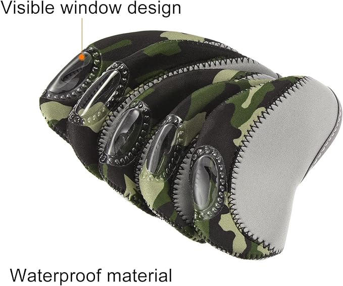 PATIKIL ゴルフクラブアイアンヘッドカバー 10個 目に見える窓 防水 保護スリーブ 屋外スポーツ用 グレー カモフラージュ