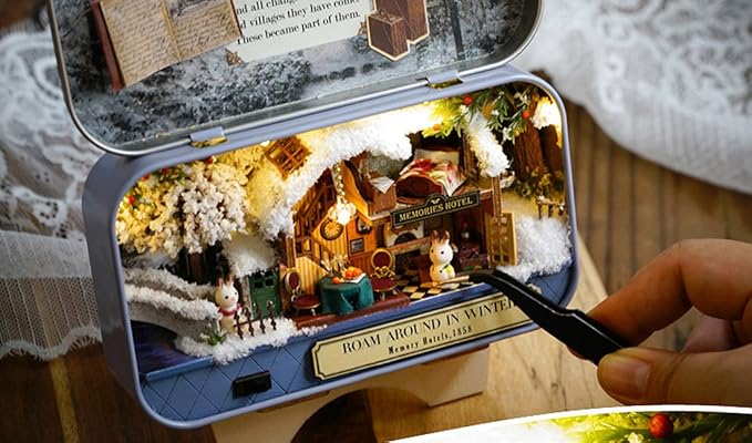 moin moin 【 日本語説明書 】 ドールハウス ミニチュア 手作りキット セット 小物入れで暮らすうさぎシリーズ 初心者 兎 ギフト 自由研究 知育 | LEDライト + スタンド 付属 (冬のお出かけ)