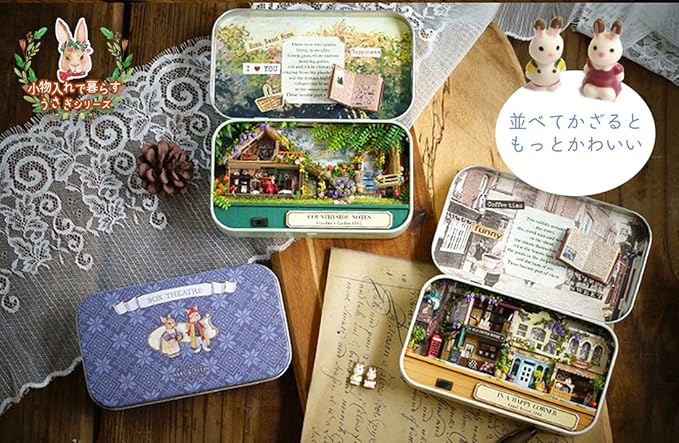手のひらサイズの小さな小物入れを開けると、うさぎが暮らす小さな世界が垣間見れます♪ 小さいながらも、アップで見てもものすごくリアル! 全9種類のテーマからお選び頂けます。並べて飾るとよりかわいい♪蓋を閉めるとコンパクトにディスプレイできます。開けても閉めても素敵なインテリアになります♪
