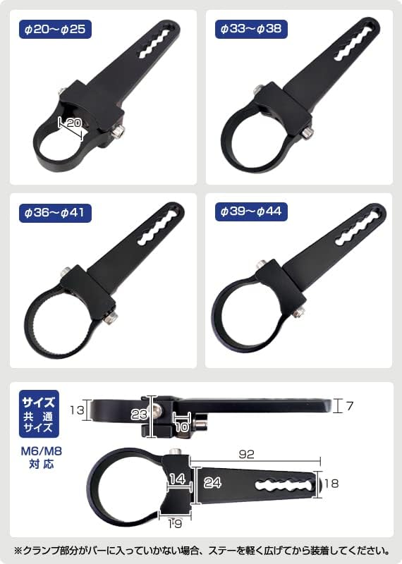 【対応サイズ】●クランプサイズ:Φ39-Φ44(ラバーで厚さ調整)●フォグ取付部分サイズ:M6/M8