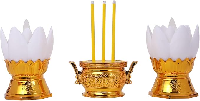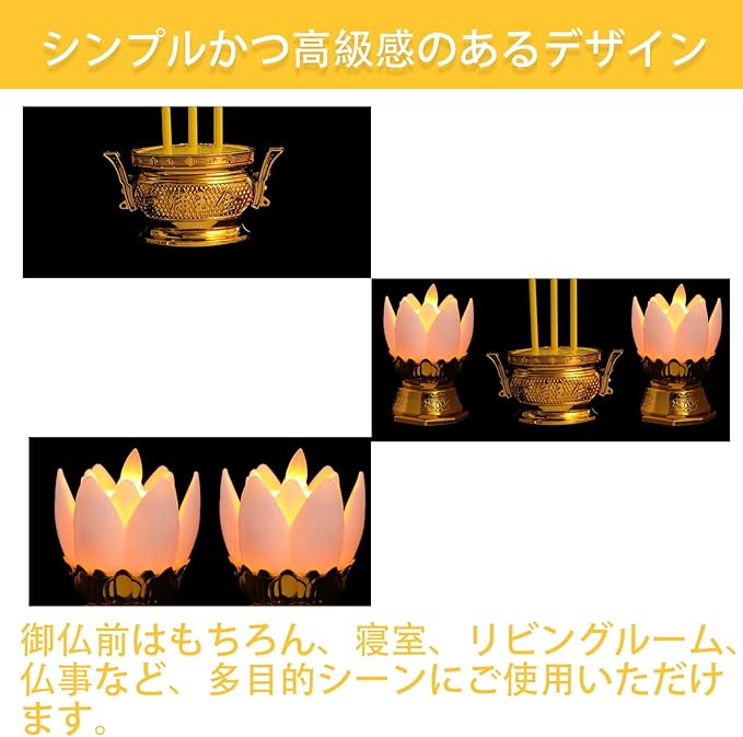 【シンプルかつ高級感のあるデザイン】模擬蓮灯と模擬香炉のセットで、長くご愛用いただけます。