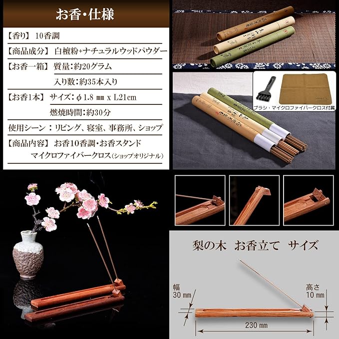 パーフェクトお香スタートセット。10種の香り+お香スタンドセット。ショップオリジナルマイクロファイバークロス付属。お香ライフをお楽しみください。