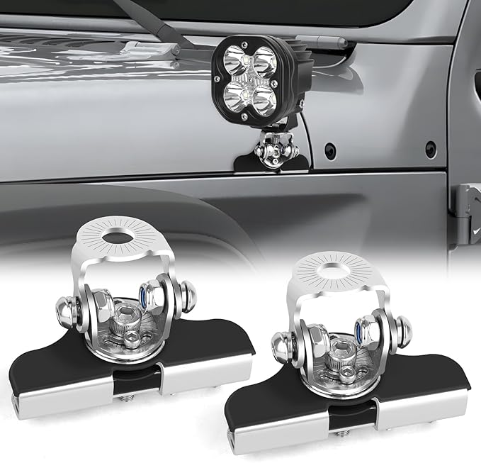 Largoods ワークライト ブラケット 360度回転機能 フォグランプステー 穴あけ不要 SUV カー ジープに対応 ワークライト 取付金具 保護パット ボンネットブラケット 取付簡単 <2個セット>