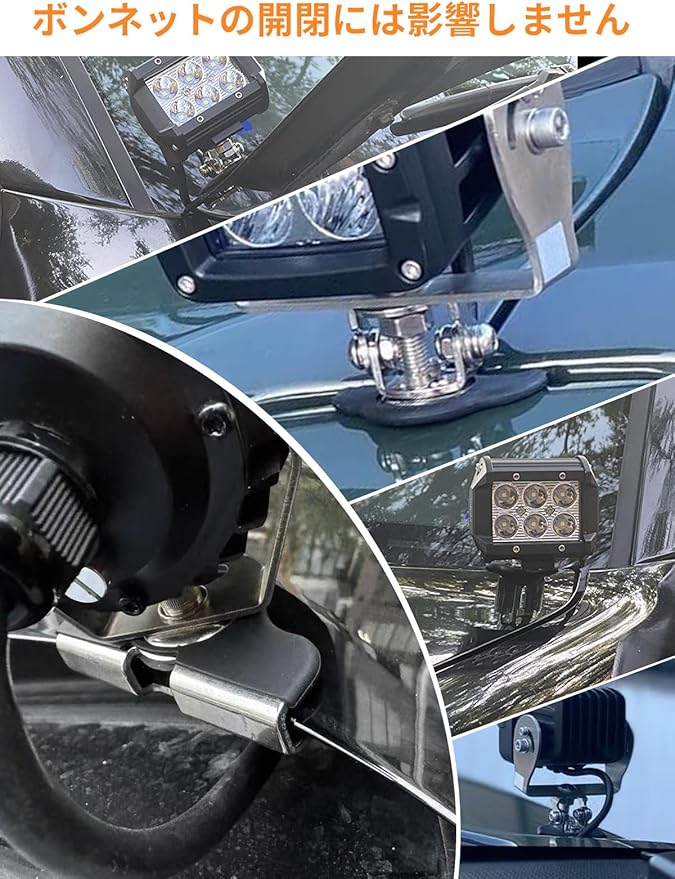 ❀安定設計 取り付けブラケットはほとんどすべてのLEDランプを取り付けることができます。塗装にダメージを与えることはありません。穴を開けずに設置できます