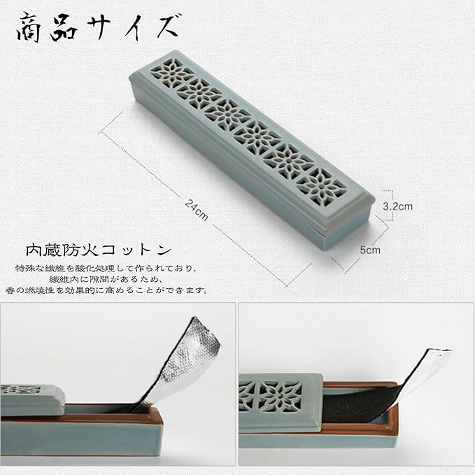 【安全性に配慮した防火シート付き】付属の防火シートにより、線香を安全に使用可能。長時間香りを楽しめるだけでなく、火災への不安を軽減し、安心してリラックスできる空間づくりをサポートします。