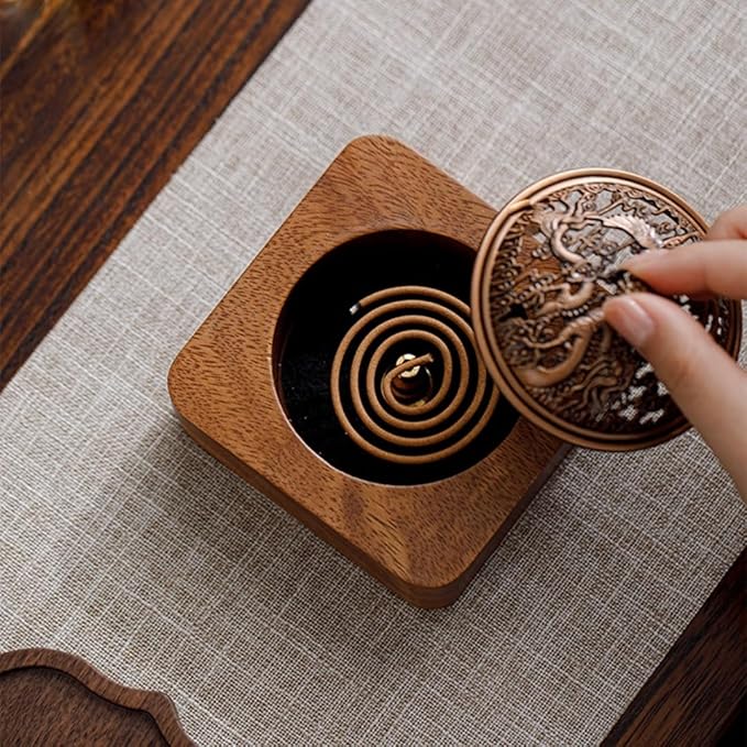 SITEDAN 香炉 お香立て 丸香炉 木製 線香皿 仏壇用香炉 香皿 お香ホルダーアンティーク 香立 香立て 渦巻き線香用 コーン香 禅 香道 インテリア 置物 (Bタイプ)