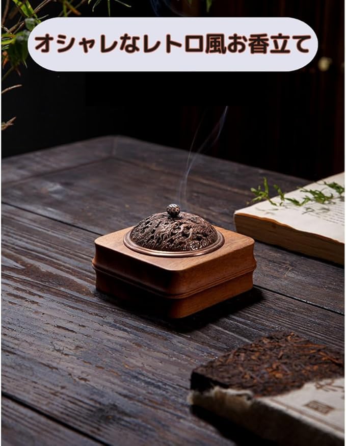 【アンティーク風のオシャレなお香立て】木製のレトロ&アンティークスタイルの香炉で、仏壇やインテリアとして美しく調和します。