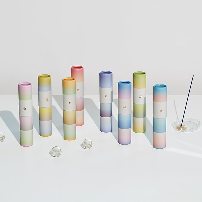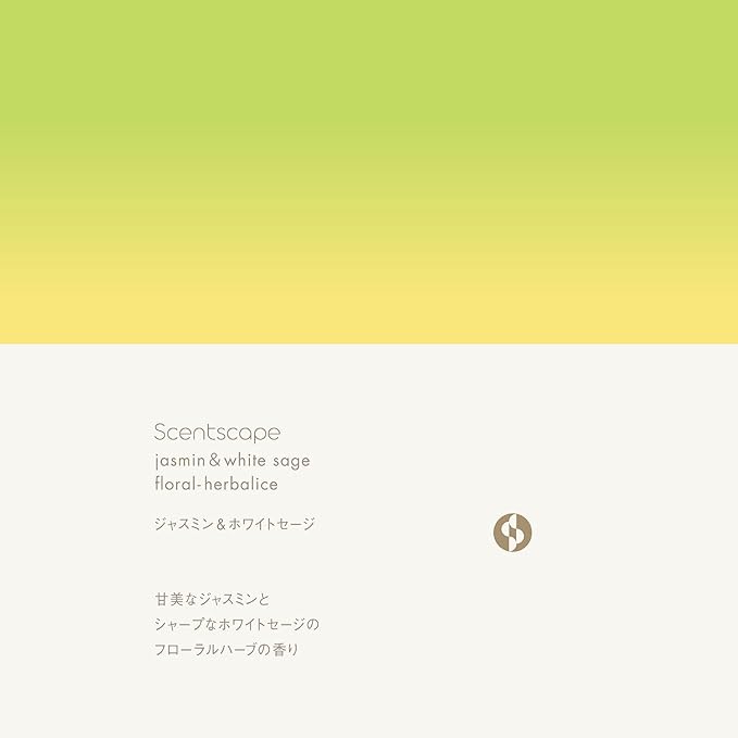 ●ジャスミン&ホワイトセージ●甘美なジャスミンとシャープなホワイトセージのフローラルハーブの香り ●Scentscapeは移りゆく季節とともにカラフルに広がる""香り(scent)""と景色(""scape"")をテーマにしたお香です。●2種類の香りを独自に掛け合わせて、「今、聞きたい」(=その香りをゆっくり味わうこと)香りを創りあげています。●それぞれの香りの心象風景をイメージしたグラデーションカラーのパッケージは、流動的な香りのうつろいを表現しました。●火をつける前から香りがほのかに漂うお香の特徴に着目し、蓋を外してお香入れとしても使える設計に。●お香としてはもちろん、香りのインテリアとしても生活に色どりを与えてくれます。●ハンドメイドで仕上げるMade in TOKYO。