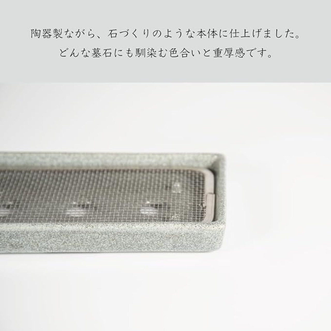 お線香を寝かせて置くタイプの線香皿です。お線香が倒れないため、供花への引火を防ぐことができます。