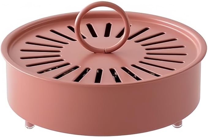 蚊取り線香ホルダー スチール製 大容量灰受け付き 滑り止め設計 お香/蚊取り線香両用 屋内屋外兼用 和モダンデザイン (ピンク)