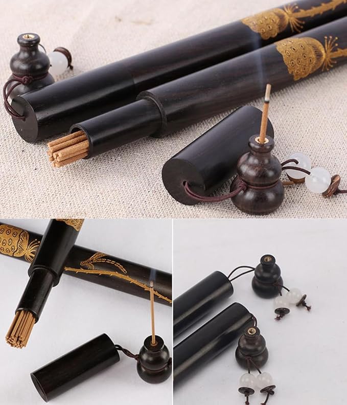 天然の黒檀木、頑丈で耐久性のある、非常にシンプルでスタイリッシュで、環境に優しい。線香筒の底には線香挿し台が付いており、外出時の使用がより便利で。
