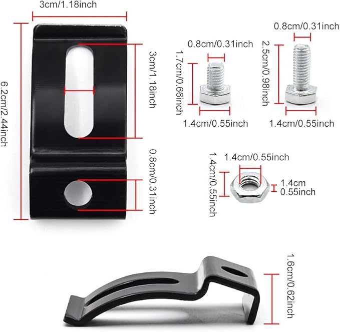 ★【取り付けステー金具詳細】素材:メタル 本体色:ブラック塗装 サイズ:6.2X3CM 対応ネジ:M8 セット内容:フォグランプステー本体X2枚、長いネジX2個、短いネジX2個、ナットX2個