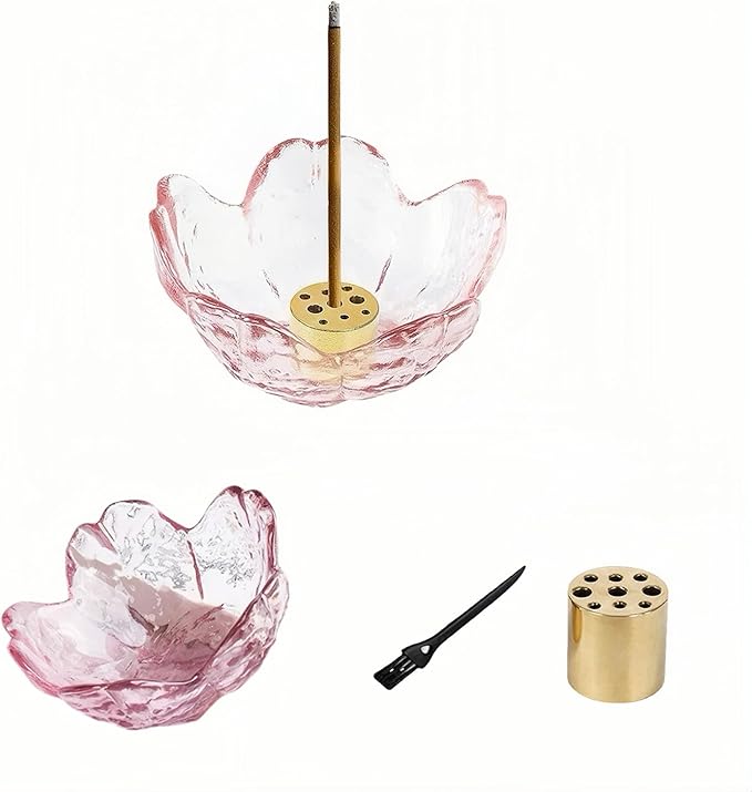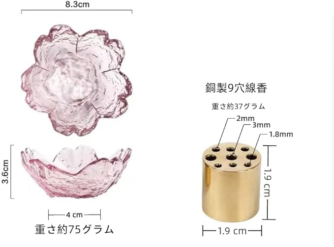 【美しいデザイン】この香炉は桜の花の形をしています。ガラス製で、割れにくく安全です。香立ては、真鍮製なので、他の素材より重さがあり、安定性がよくて、線香をよく支えられます。 香炉の口も広く作られ、洗えて、お手入れが簡単です。灰取りブラシも付いているので、お手入れも簡単です。