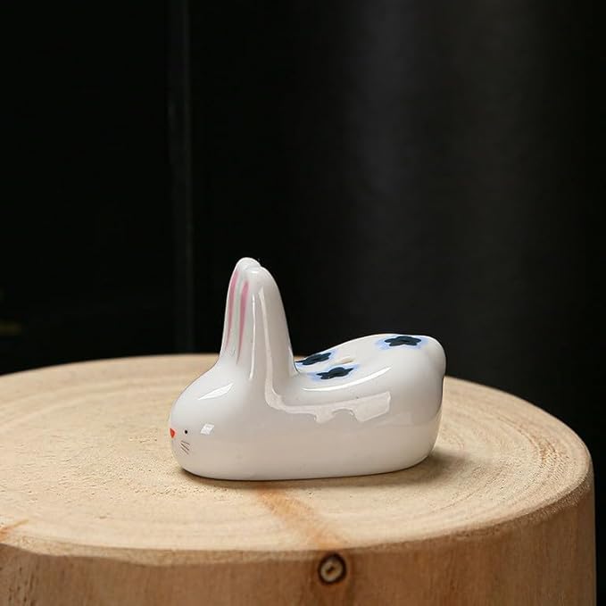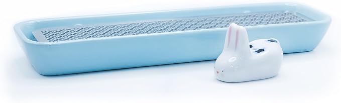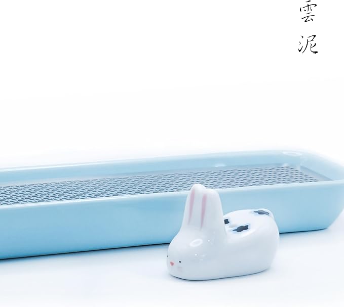 お香立て おしゃれなデザイン、線香立て と横置きができる 香炉 セット、お香の癒し、仏具・仏壇用品に最適、可愛い ねこと兎のお香立てつき。 (水色・兎)